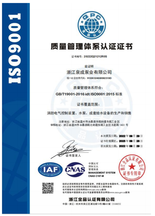 质量管理体系认证证书